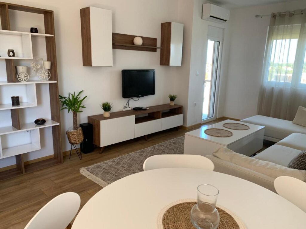 Sunshine & Cozy Apartment is a renovated stay in Ulcinj, just 1.2 km from Velika Beach. It offers free parking, WiFi, airport transfer, and car rental. The apartment includes 2 bedrooms, 2 bathrooms, a kitchen, flat-screen TV, and a balcony with sea views. A children’s playground makes it ideal for families, only 4.7 km from Ulcinj’s Old Town.